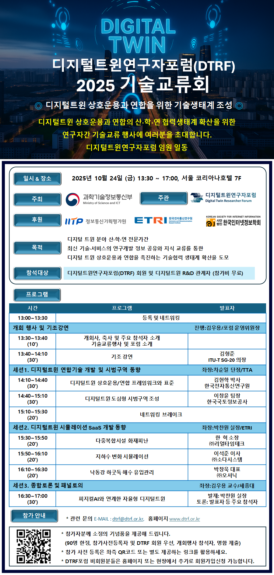 행사명: 디지털트윈연구자포럼(DTRF) 2025 기술 교류회
