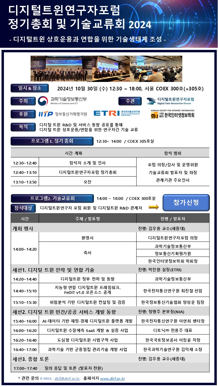 행사명: 디지털트윈연구자포럼 정기총회 및 기술 교류회 2024