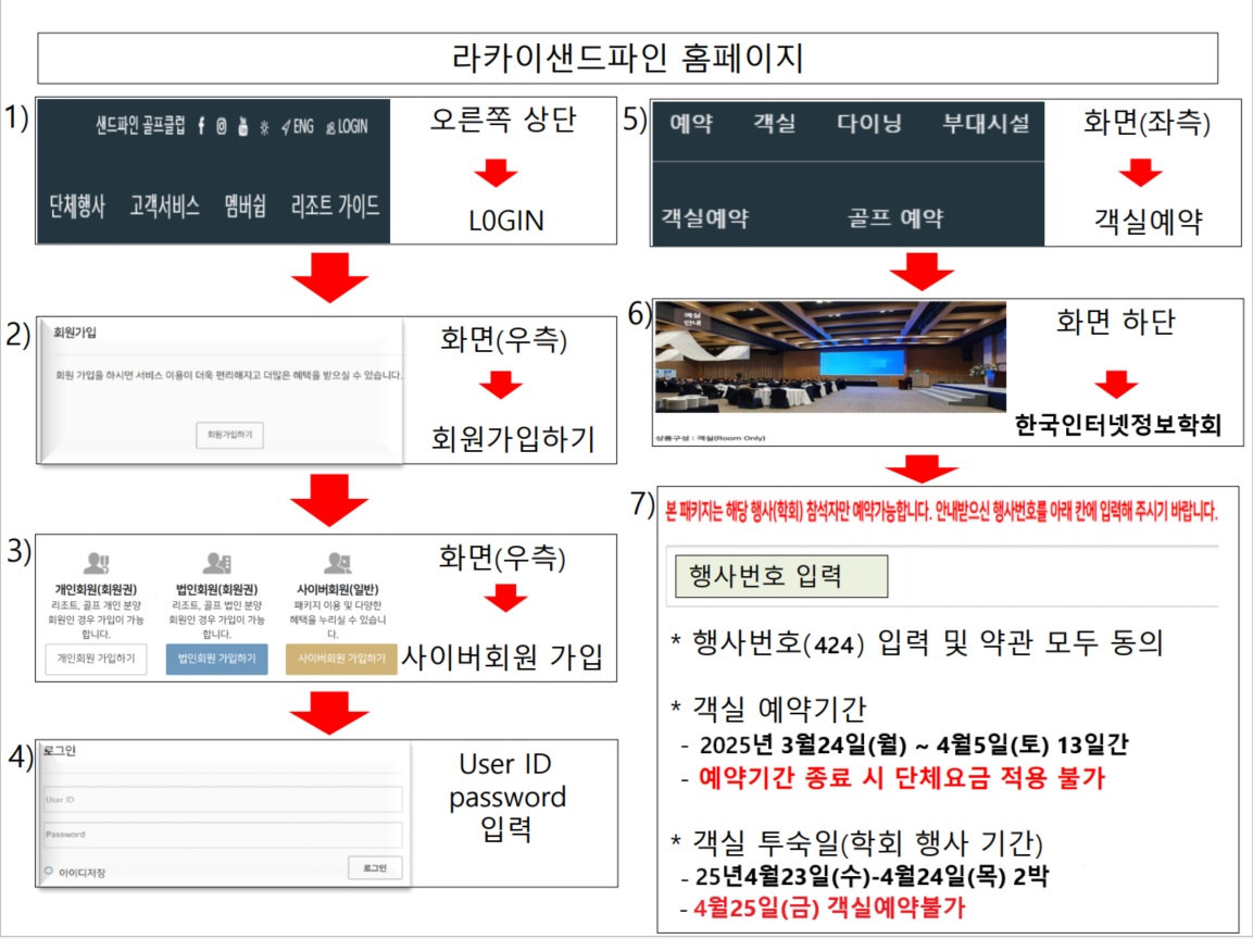로그인 후 행사번호(424) 입력 및 약관 모두 동의해야 객실 예약이 가능합니다.
